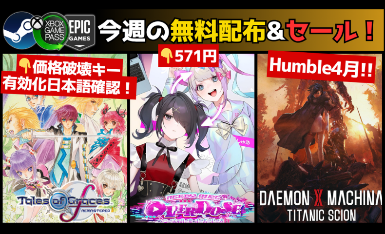 【4/12】今週配布が豊富!Steam配布の『Graveyard Keeper』はマスト!/ハンブルチョイス4月をチェック/『Tales of Graces』の破格すぎるお得キー